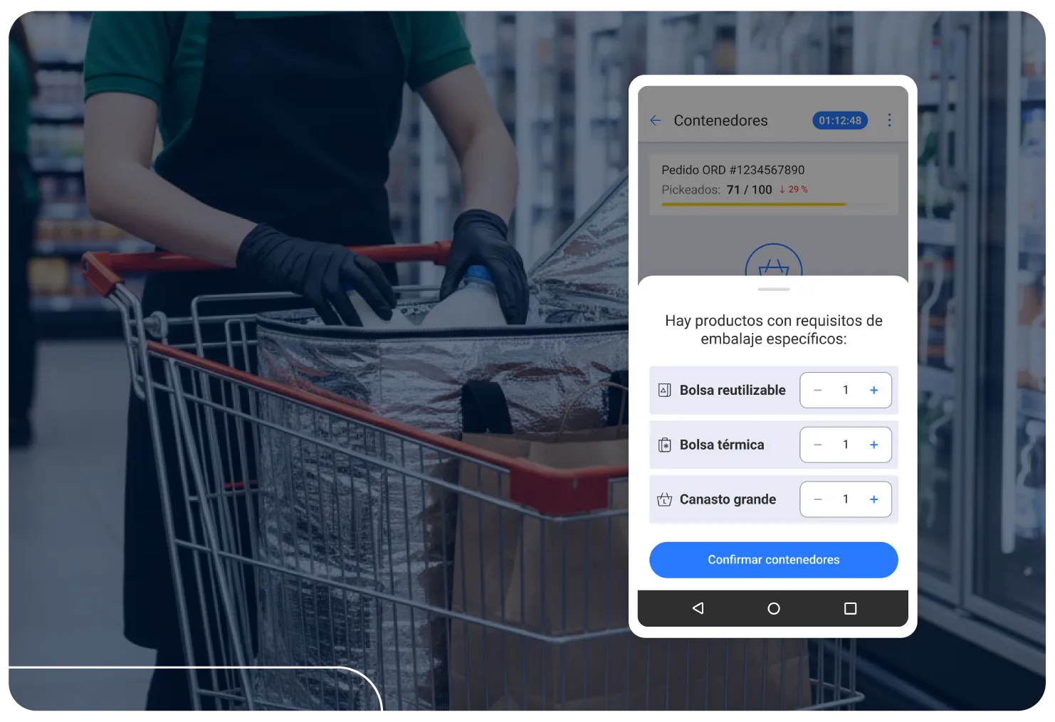 Cuando un pedido incluye productos que requieren contenedores especiales —como ítems refrigerados— Janis Orders App sugiere automáticamente qué tipo de contenedor utilizar. De esta forma se cumplen las condiciones logísticas específicas y se reducen errores durante la preparación.